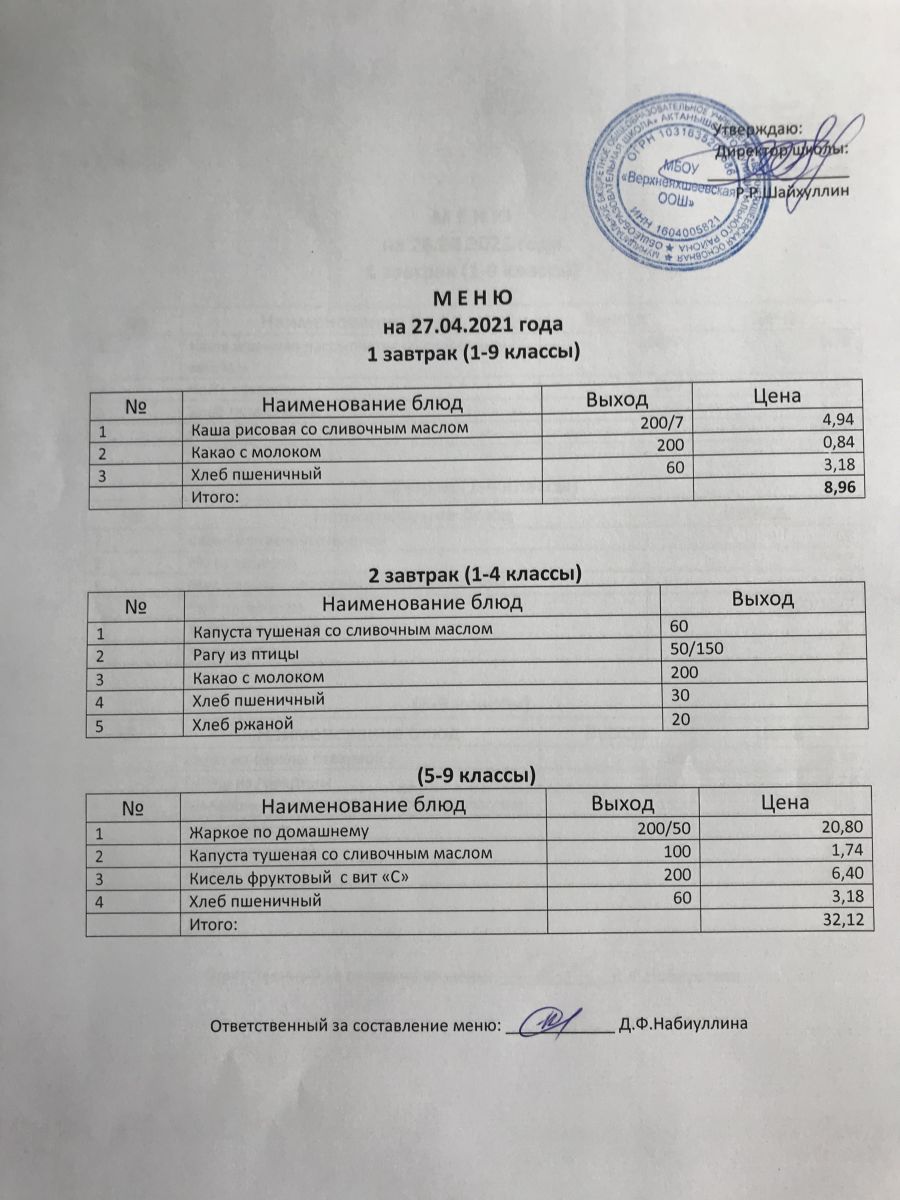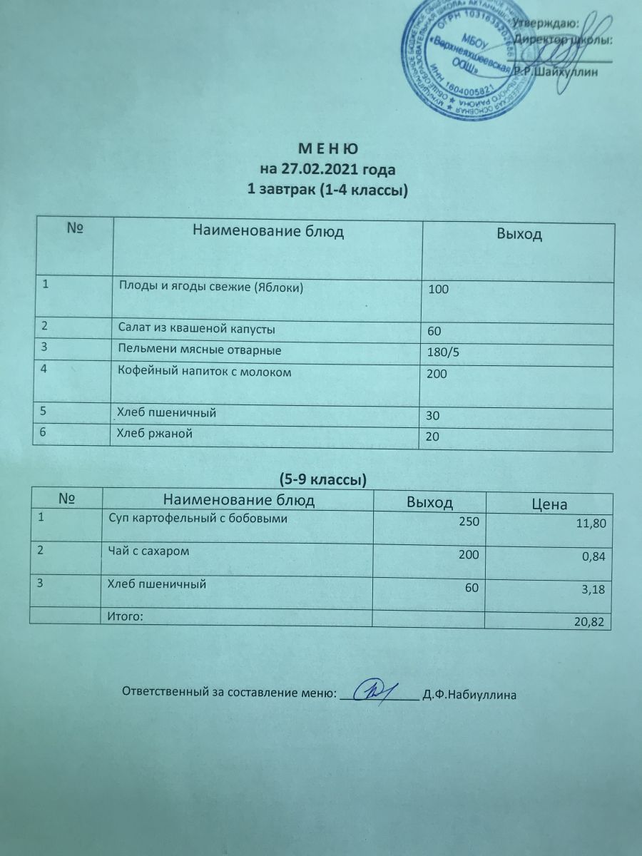 Меню на 27.11.2020 и 28.11.2020