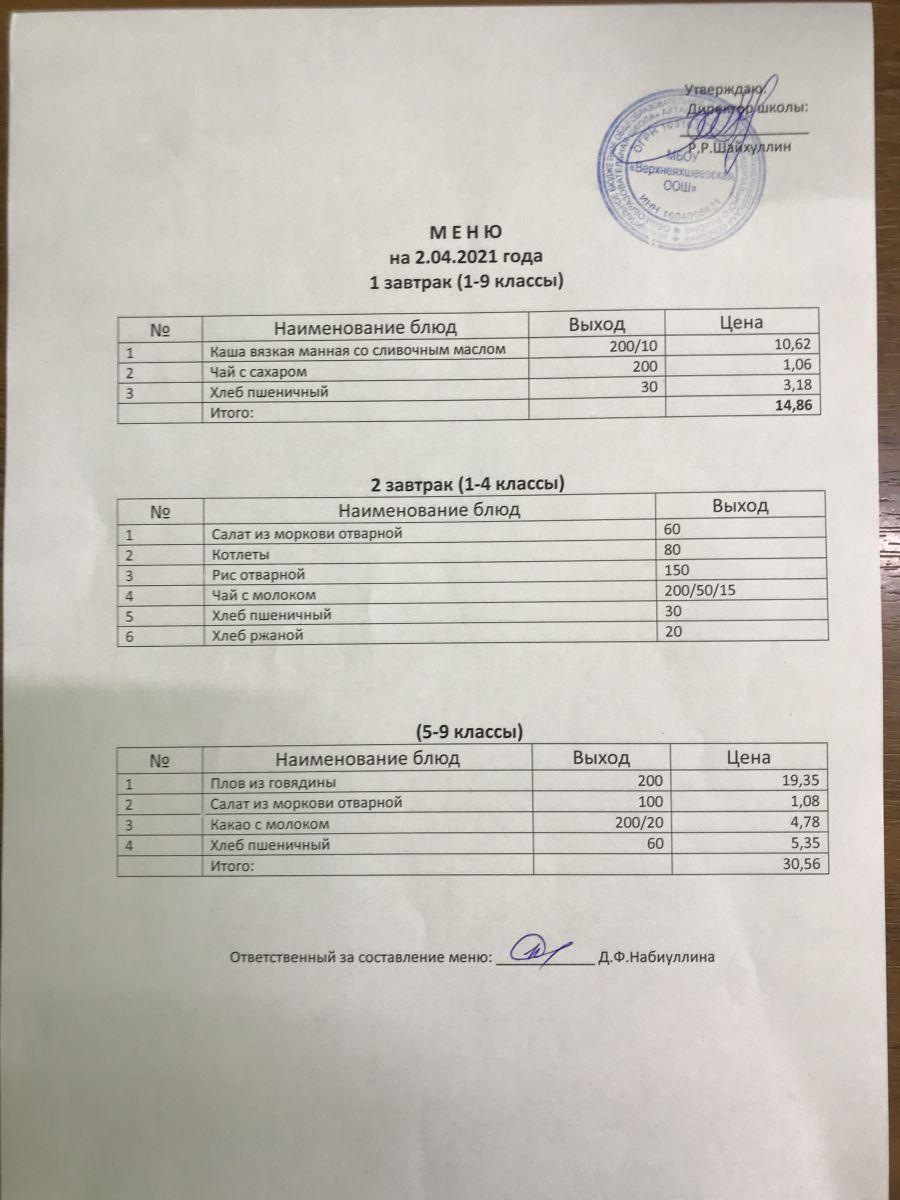 Меню на 02.12.2020 и 03.12.2020