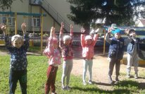 У детей старшей группы день в детском саду начинается с зарядки.Наш девиз " Я здоровье сберегу. Сам себе я помогу".