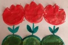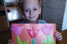 Скоро праздник 9 мая. И Артём . Ш. сделал открытку " Тюльпаны " .