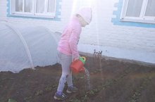 Воспитанница нашего детского сада отдыхают с пользой, Милена помогает родителям в огороде.