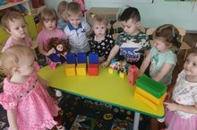 В группе раннего возраста воспитатель Хусаинова В. провела занятие по ФЭМП, на котором дети учились различать предметы по форме (кубик, кирпичик). Также закрепили умение различать и показывать части своего тела.