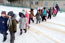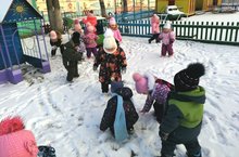 Дети второй младшей группы "Колокольчик" вышли на прогулку порадоваться первому снегу. -