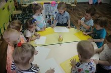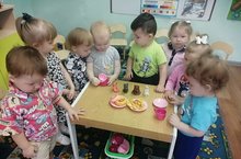 С детьми 2 группы раннего возраста по художественно- эстетическому развитию (лепке) провели занятие на тему: "Баранки для зверят", где продолжали знакомство с пластилином, учили раскатывать палочки между ладонями прямыми движениями рук, соединять концы палочек, образуя кольцо, прививали интерес к лепке.