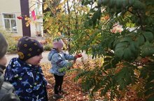Воспитанники младшей группы"Радуга" на прогулке наблюдали за рябиной.