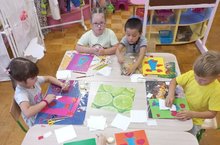 старались аккуратно выполнить работу. После занятия, дети потанцевали с листочками и изображали листопад. -