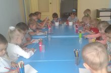 С детьми младшей группы была проведена беседа на тему "Есть такая профессия- Родину защищать", а затем малыши раскрашивпли военную технику.