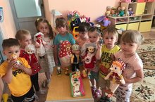В рамках тематического дня " День русских посиделок" дети младшей группы ознакомились с устным народным творчеством на примере народных игрушек. А также учились лепить игрушки из пластелина.