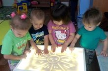 Во второй группе раннего возраста (воспитатель Мингалеева Г.) прошло занятие " Рисование песком на стекле"