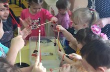 Воспитатель средней группы Зайцева М. Показала открытое занятие по теме"волшебный магнит". Дети изучили свойства магнита, провели опыты по изучению силы магнита. Также очистили импровизированнуюреку Ахтырку от металлического мусора.