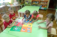 Дети старшей группы с воспитателем Черновой Н.Н. играли в настольную игру " По тропинкам родного наследия".