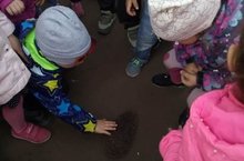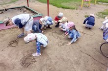Дети старшей группы рисовали палочкой на песке поляну с ромашками.