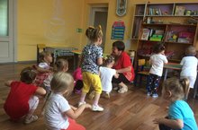 К детям младшей группы пришел в гости "Колючий ежик". Воспитатель Садовникова И.Г. рассказала детям об этом безобидном животном, сказала следует обратить внимание на колючий клубок иголок. Дети подражают: фыркают, как ежик, спрашивают чем он питается. Детям было очень интересно наблюдать за ним.