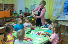 Воспитатель Хусаинова В. с детьми младшей группы провела занятие по художественно - эстетическому развитию, на которм украшали дымковскую игрушку. Дети продолжали знакомство с дымковской игрушкой, учились выделять элементы росписи и наносить их на силуэт уточки.