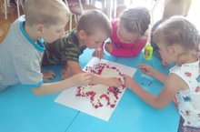 Ребята старшей группы с раннего утра восторженно рассказывали о своей республике и родном посёлке. Затем совместно с воспитателем изобразили герб Республики Татарстан в коллективной аппликации, смешанной техникой. -
