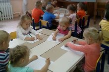 Дети средней группы " Непоседы" с воспитателем выполняют задания в прописях для развития мелкой моторики,что необходимо в дальнейшем для овладения навыками письма.