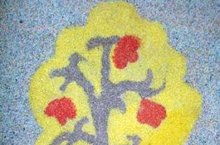 С работой " Красота осеннего дерева" техника рисования цветным песком.