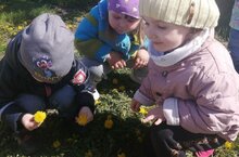 С малышами рассматривали одуванчики, а так же разучили стихотворение. -