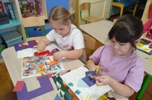 Дети подготовительной группы на занятии по Конструктивно- модельной деятельности выполнили работу на тему: " Собачка ". Учились складывать бумагу пополам, правильно пользоваться ножницами, аккуратно выполнять работу.