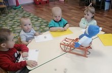 На тематической недели "Зимние забавы", с детьми 2 гр раннего возраста провели познавательную беседу о зиме, зимних забавах. Учились внимательно рассматривать иллюстрации, а так же лепили Снеговика, поиграли в игровую ситуацию "Прокати снеговика на саночках" и разучили стихотворение "Снеговик"
