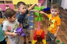 В нашей младшей группе ребята очень любят строительные игры. Мы имеем достаточное количество деревянных строительных наборов, пластмассовых наборов. В ходе игр детей с различными видами конструкторов происходит знакомство с простейшими свойствами геометрических тел, их форм. Дети находят собственные индивидуальные решения в усложнениях или изменении своих построек. Эти игры дают психологическое равновесие, отступает боязнь что-то начать. Правильно организованные игры со строительным материалом способствуют развитию фантазии, мышления ребенка.