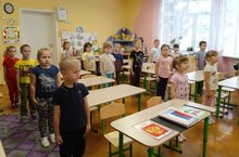 В рамках тематического дня "День герба РФ" с детьми средней группы была проведена беседа "Символы России". Дети узнали, что означают цвета на нашем флаге, и почему на гербе изображен двухглавый орёл. А в конце беседы дети попробовали сами собрать флаг России, на котором разместили герб.