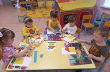 Дети подготовительной группы на занятии по рисованию закрепили знания о татарских народных костюмах и расписали ичиги и тюбетейки татарским орнаментом.