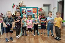 В рамках тематической недели "Народов много - страна одна" дети младшей группы знакомились с государственными символами России.