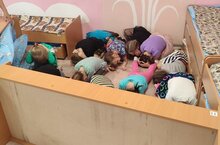 Во исполнение письма Управления Федеральной службы войск национальной гвардии РФ по РТ №557/25-1071 от 22.04.2022г. , а также п.4.протокола заседания антитеррористической комиссии в Республике Татарстан №ПР-47 от 05.03.2022г. организовано проведение тренировки по эвакуации людей и предотвращению условного совершения (угрозе совершения) преступления в форме вооруженного нападения, в том числе террористической направленности. Учение проведено в старшей группе. Предполагаемая угроза совершения- второй этаж детского сада, лестничная площадка. Воспитанники и взрослые эвакуированы в безопасное помещение спальни, двери забаррикадировали мебелью, дети расположились на пполу в углу вдалеке от окон.