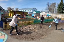 Сотрудники ДОУ вышли на уборку закрепленной территории по ул. Островского.