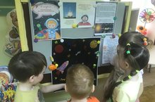 Космос всегда был и остается сегодня одной из наиболее волнующих человечество загадок. Его глубинные дали неустанно влекут к себе исследователей всех поколений, звездное небо завораживает своей красотой, а звезды издревне были верными проводниками для путешественников. В рамках темы с детьми старший группы, воспитательАхметшина З.З, провела беседу о космонавтах и космосе. Дети рассмотрели фотографии с изображением космоса. Свои впечатления о увиденном дети нарисовали, это космические корабли и планеты солнечной системы.