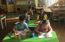 Дети подготовительной группы в рамках тематической недели "Служу России "рисовали портрет папы. Воспитатель Феоктистова О.А