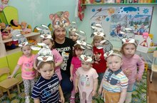 Дети второй группы раннего возраста вместе с музыкальным руководителем Лошкаревой Е.А. и воспитателем Хусаиновой В.И. поиграли в музыкальную игру "Зайцы и медведь". -