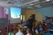В рамках проекта ,,Мой край родной - Татарстан", Нуртдинова Э.Ф с детьми старшей группы, провела беседу "Поселок в котором я живу". Она повторила с детьми символику Татарстана, познакомила ребят с гербом и флагом нашего поселка, дети называли достопримечательности поселка Алексеевское.
