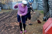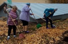 Сегодня сотрудники ДОУ вышли на уборку территории.