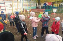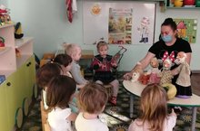 С детьми второй группы раннего возраста воспитатель Хусаинова В.И. провела познавательную беседу на тему "Дары осени". Ребята закрепили название овощей и фруктов, в конце беседы ребята посмотрели кукольный театр.