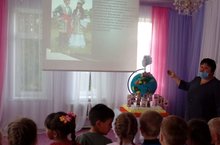 Музыкальный руководитель Лошкарева Е.А. познакомила детей старшей группы с русской избой, ее убранством. Рассказала о труде крестьян, которые жили в старину. Воспитатель Ахметшина З.З познакомила детей с ролью домашних животных в жизни человека.