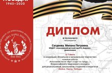 Наши ребята приняли участие во всероссийском творческом конкурсе для дошкольноков "Война. Народ. Победа". Свои вокальные данные продемонстрировали две сестренки Сагдеевы Милана и Дарьяна, они заняли достойное 1 место. Леонтьева Ольга раскрыла тему в номинации "Детские исследовательские и научные работы, проекты" заняла 1 место. В номинации художественное творчество Авдеев Захар занял 3 место. Клычкова София оказалась лучшей в номинации литературное творчество заняла 3 место. Поздравляем наших воспитанников и руководителей с победами. Желаем творческих успехов.