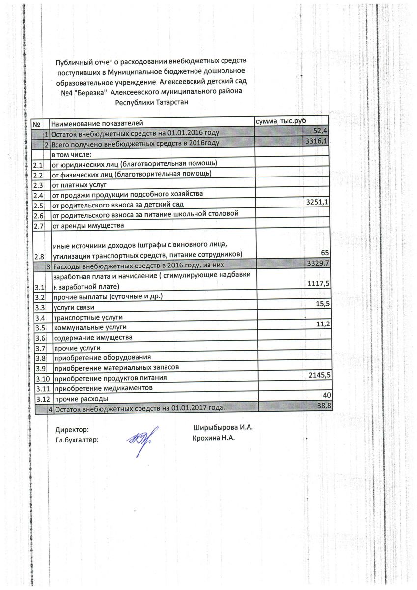 Публичный отчет о расходовании внебюджетных средств за 2016г.