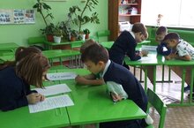 Затем начали командную игру. Каждой команде нужно было ответить правильно на тестовые вопросы. Вопросы ребятам показались сложными, но тем не менее каждая команда справилась с заданием. Победу одержали учащиеся 4 класса.