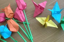 Во время работы пришкольного лагеря труда и отдыха ребята изготовили цветы для возложения к обелиску воинам погибшим во время ВО войны 1941-1945 гг.