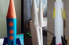 На уроке технологии, обучающиеся 4 класса, изготовили ракеты из бумаги и картона ко Дню космонавтики, к Международному дню первого полета человека в космос.