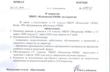 Приказ о закрытии МБОУ "Ялкынская ООШ" на карантин 17.03.2020