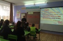 Сегодня в школе педагог-организатор Гришина Т.В. вместе с членами ДОО «Радуга» провели Патриотический «Урок Победы». Сегодняшнее мероприятие было посвящено событиям Великой Отечественной войны. 9 мая 2018 года мы будем праздновать 73 годовщину освобождения нашей страны от немецко-фашистских захватчиков.