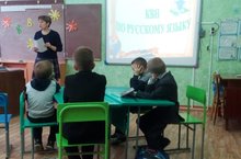 14 декабря с обучающимися начальных классов Назарова М.Ю. провела КВН по русскому языку. Дети разделились на 2 команды: «Алфавит» и «Торнадо». Были предложены загадки, пословицы, задания «Шифровальщики», «Наборщик», «Волшебный круг». В результате упорной борьбы победила команда девочек «Алфавит».