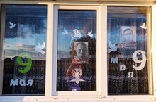 Ребята, учителя украшали свои окна символами Великой Победы – георгиевскими лентами, красными звездами, словами благодарности ветеранам ВОВ. Символы ВОВ: вырезали трафареты из бумаги, делали красочные аппликации, каждый проявлял фантазию по- своему. Своим участием в акции мы отдавали дань памяти подвигу и доблести героев Великой Отечественной войны.