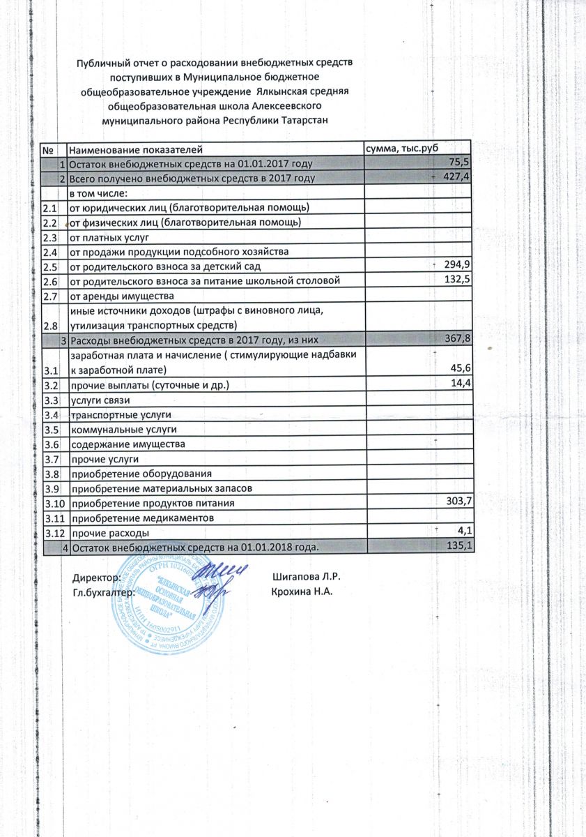 Публичный отчет о расходовании внебюджетных средств за 2017 год