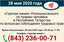 Получить исчерпывающую информацию, разъяснить спорные ситуации гражданам помогут представители Уполномоченного по правам человека в Республике Татарстан, Прокуратуры Республики Татарстан, Министерства труда, занятости и социальной защиты Республики Татарстан и Государственной инспекции труда по Республике Татарстан.Телефон «горячей линии»: (843) 236-00-71.Время консультации: с 09.00 до 17.00.