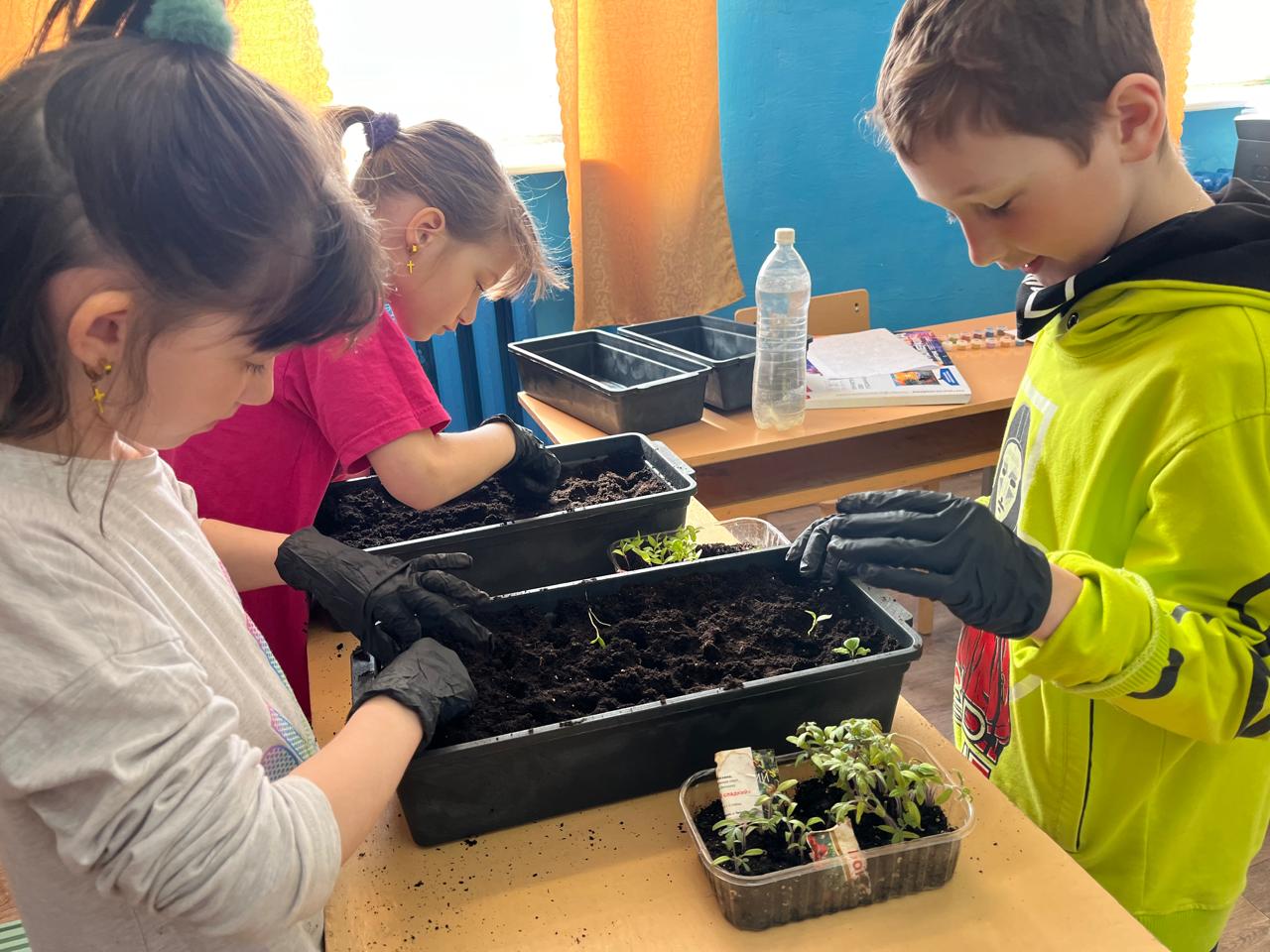 Сегодня четвертый день весеннего пришкольного лагеря «Радуга». День в пришкольном детском оздоровительном лагере «Лесовичок» традиционно начался с утренней бодрящей зарядки. После зарядки воспитатели ознакомили ребят с планом мероприятий на день. Затем после завтрака воспитатель провела минутку безопасности «Безопасное поведение в окружающем мире», где ребятам напомнили о правилах безопасности жизни. В течение дня ребята поработали в творческой мастерской по рисованию, лепке, раскраске, а так же поговорили о бережном отношении к природному богатству. После чего посадили своими руками рассаду баклажанов и томатов. А также школьники приняли участие в веселых стартах "Физкульт — Ура!". День прошел на ура! Ребята довольны!