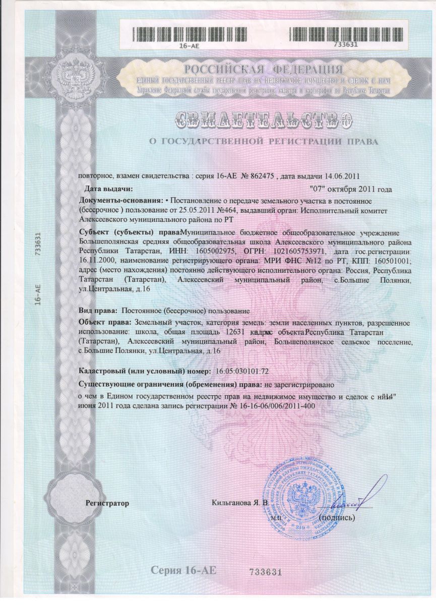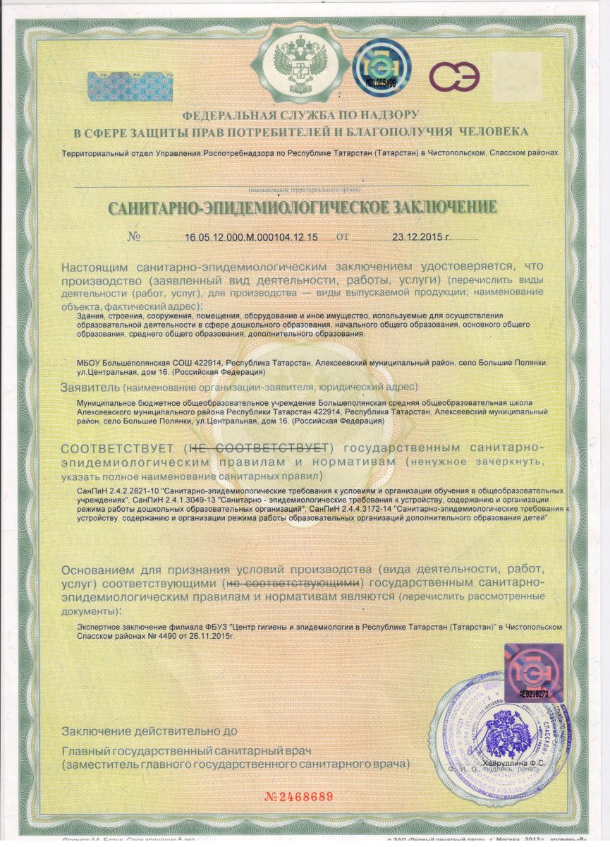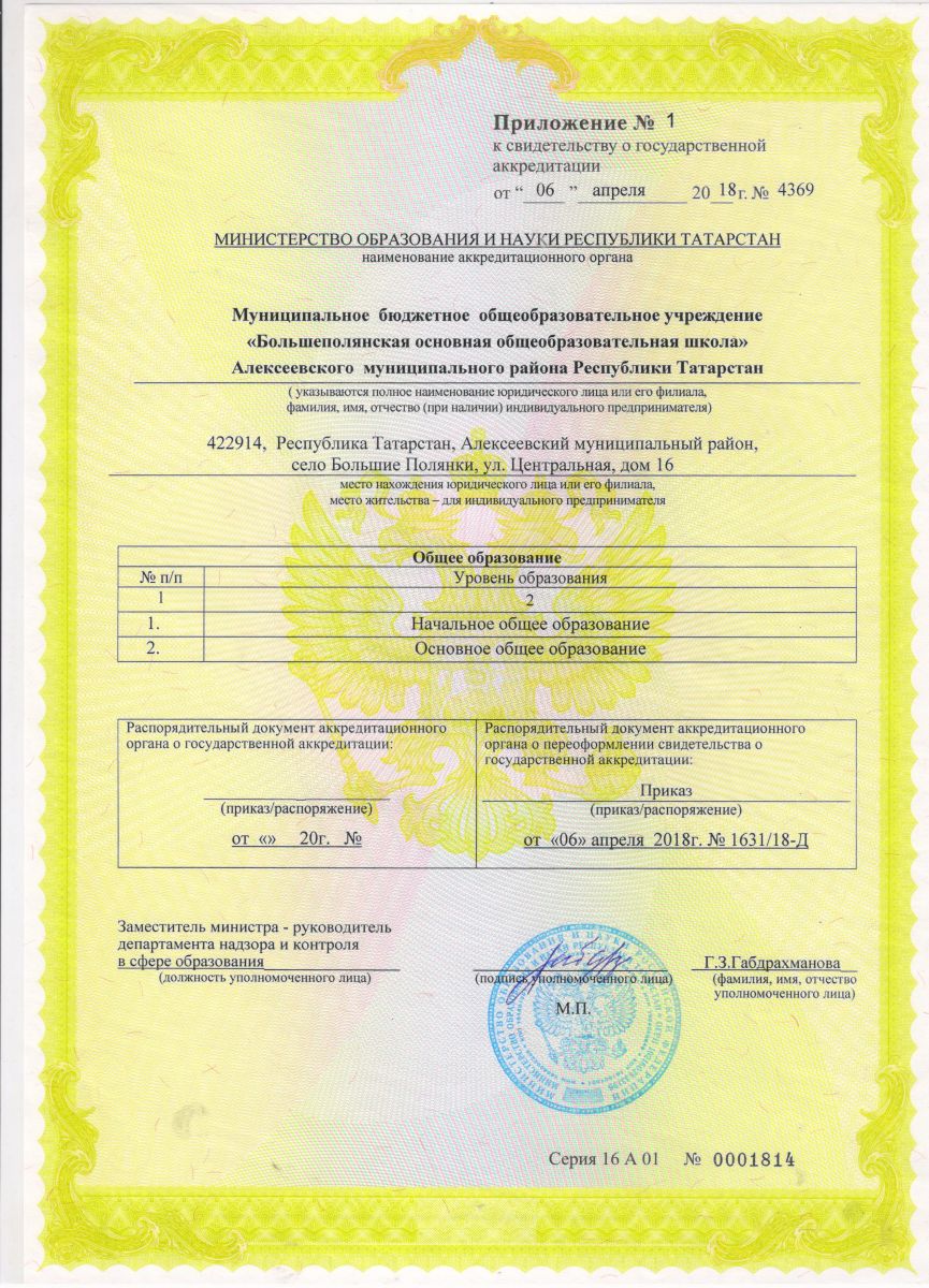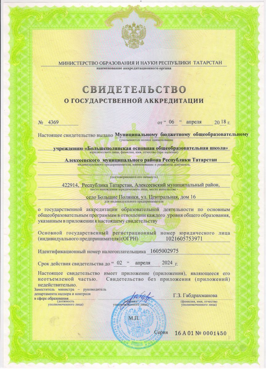 Муниципальное бюджетное общеобразовательное учреждение «Большеполянская основная общеобразовательная школа» Алексеевского муниципального района Республики Татарстан/ Татарстан Республикасы Алексеевск муниципаль районы "Зур Полянка төп белем бирү мәктәбе” муниципаль бюджет гомуми белем бирү учреждениесе